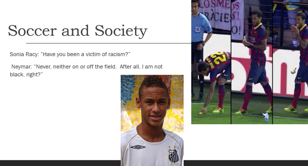 The course discusses race in sports and society starting from the view of race in Brazil.