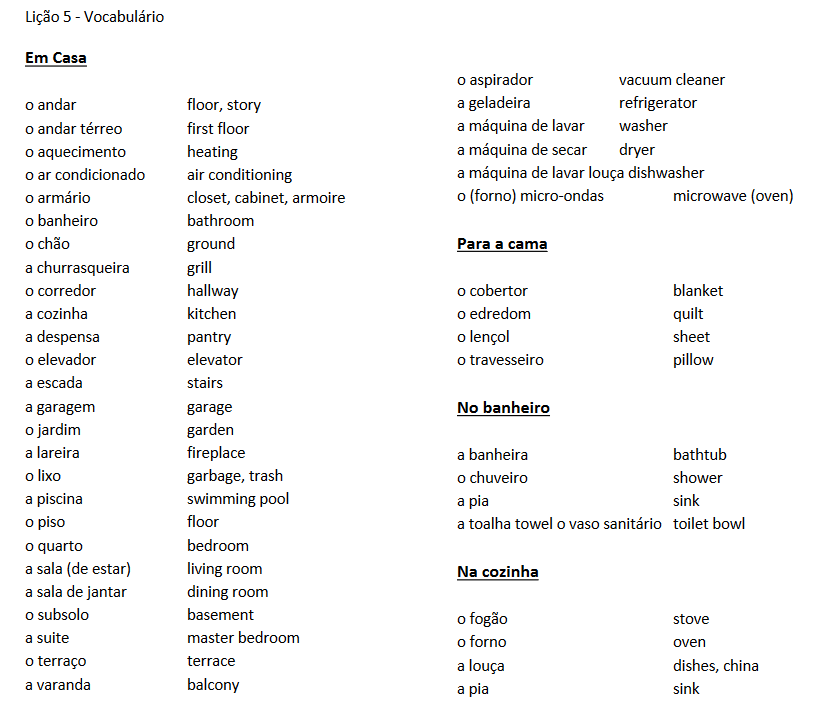 Beyond lists, much of the vocabulary is related to life in Brazil and the Lusophone world.